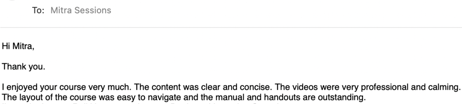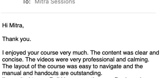 This course has been unlike any other I ever did. Mitra's teaching is so to the point that it just sticks. You can learn Reiki even if you feel like you have no time or are an absolute beginner"